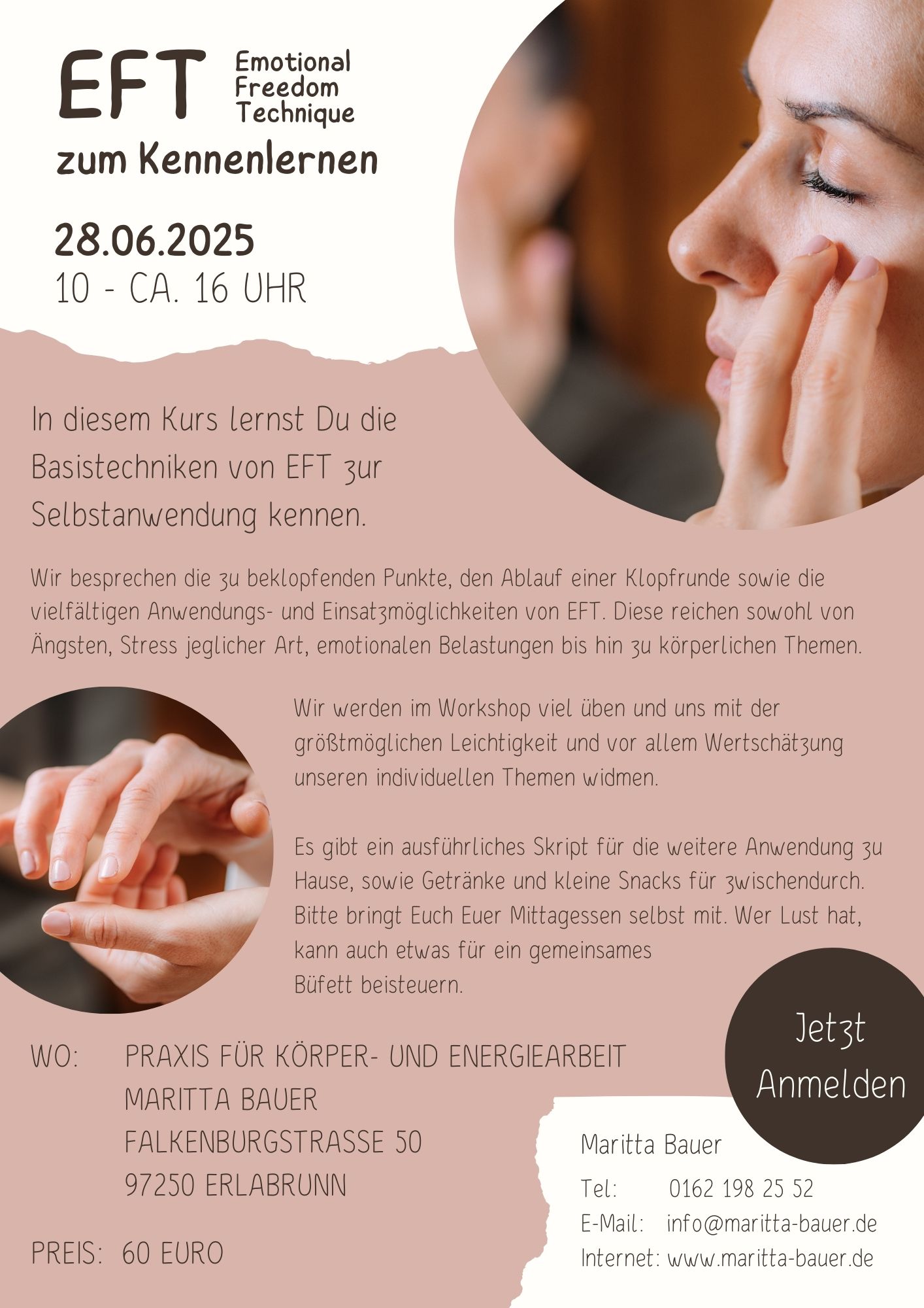 - 28.06.2025: Kurs "EFT Emotianal Freedom Technique" zum Kennenlernen